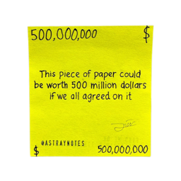 -This piece of paper could be worth 500m dollars if we all agreed on it.